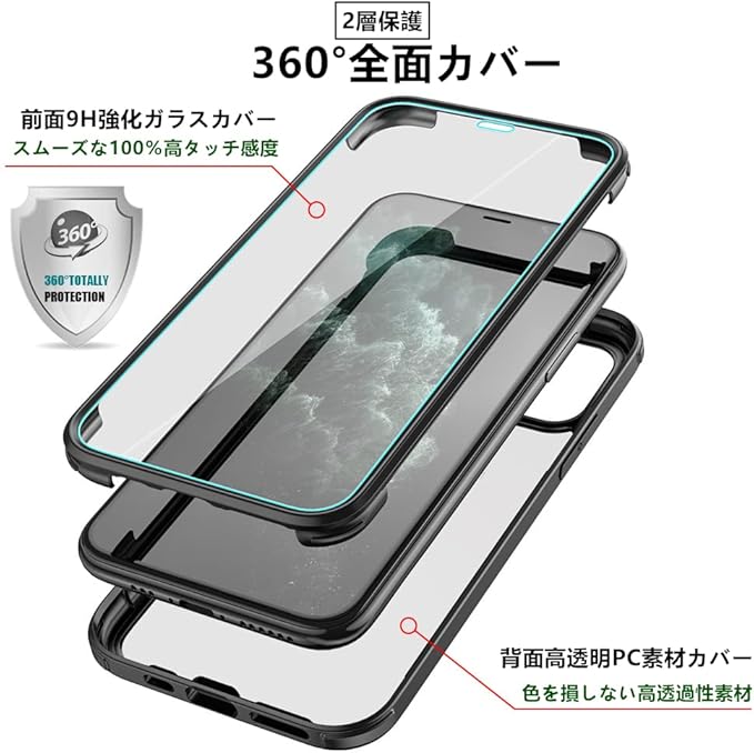 【対応機種】iphone16e/iphone16/iphone16pro/iphone16plus/iphone16promax/iphone15/iphone15pro/iphone15plus/iphone15promax/iphone14/iphone14pro/iphone14plus/iphone14promax/(br) 【100%画面感度】表面9H強化ガラスは、高透過率、適切に液晶画面を保護します。画面上の操作も違和感なくスムーズに行え、スムーズなタッチ操作体験をお楽しみいただけます。表面、裹面とも、二重構造の透明素材を使用されています。iPhone本体の自然な外観を維持する元のデザインも綺麗に見られます。(ご注意:他のスクリーン保護フィルムと同時に使用しないでください。)(br) 【360度全面保護】前後両面カバーのデザインなので、360 全面保護できます。表面ガラスフィルムも購入する必要はありません。耐衝撃が高く柔軟性に優れたソフトなシリコン素材を使用され、ケースの四隅が滑り止めの凸型リブ設計を施し、嵌め込み式クリア前カバーと透明バックカバーの組み合わせにより、360度の全方位からスマホを守ります。また、ケースの四隅にエアバッグのデザインで、落下時の衝撃を吸収します。背面レンズ部分は0.5MM高く設計、レンズ面が地面などに接触せずに傷防止になります。(br) 【ワイヤレス充電対応】カバーをつけたまま、ワイヤレス充電、Qi充電、MagSafe充電可能です。操作性を考え抜いた安心デザインです。穴の位置がスマホ本体より1:1に穴を作ります。