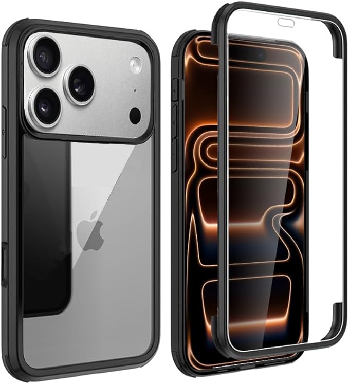 YSAN iPhone17promax ケース 360度全面保護 [100%画面感度][両面透明] クリアフルカバー 米軍MIL規格 透明 耐衝撃 薄型 軽量 シリコンフレーム 滑り止めバンパー Qi充電対応 (ブラック, iPhone17ProMax)