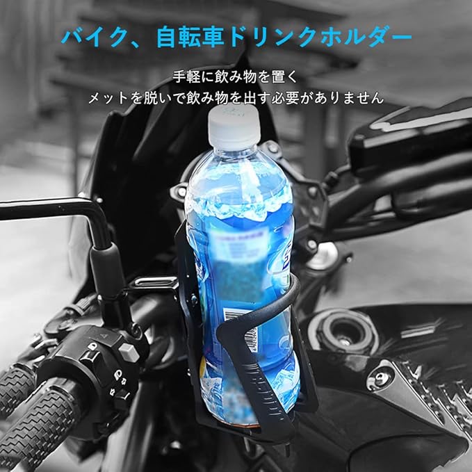 バイク 自転車 ドリンクホルダー ボトルホルダー ボトルケージ オートバイ ペットボトル カップホルダー ドリンク ホルダー ドリンクバー コップホルダー サイズ調整可能 簡単取付 黒 バックミラータイプ