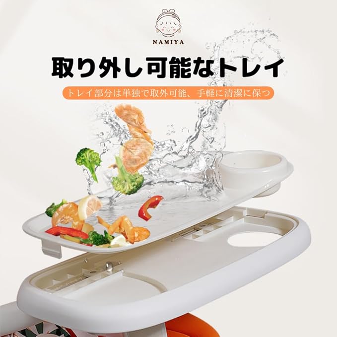取り外し可能な食事トレイ: 食事トレイは簡単に取り外し可能。お手入れが簡単で、清潔に保ちやすい。