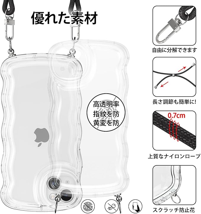 【ストラップ付き & 取り外し可能 & 調整も簡単】対応 iPhone 17 Pro Maxケースネックストラップが付属します、スマホために特別にデザインされました。超柔らかいロープで設計された、ストラップはいつでも調整および取り外しできます、忙しい時に両手を解放してくれる。 ネックストラップ装着時の最大調整長:86cm、必要な形や長さに簡単に調節できます。作業、旅行、出張、ショピング、散歩、コンサート、パーティーに最適です。