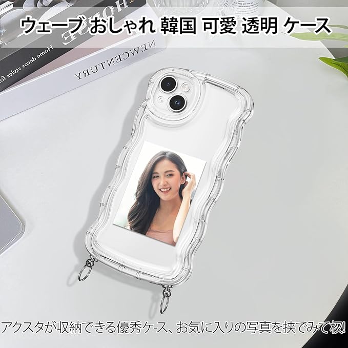 QLTYPRI ケース iPhone 17 Pro Max 用 ケース クリア TPUカバー 調節可能な ショルダー 肩がけ 首掛け 紐付き 斜めがけ ウェーブ おしゃれ 韓国 可愛い アクスタ収納 透明 薄型 軽量 耐衝撃 スマホケース ワイヤレス充電対応 ストラップホール付き アイフォン17Pro Max カバー 6.9インチ 対応