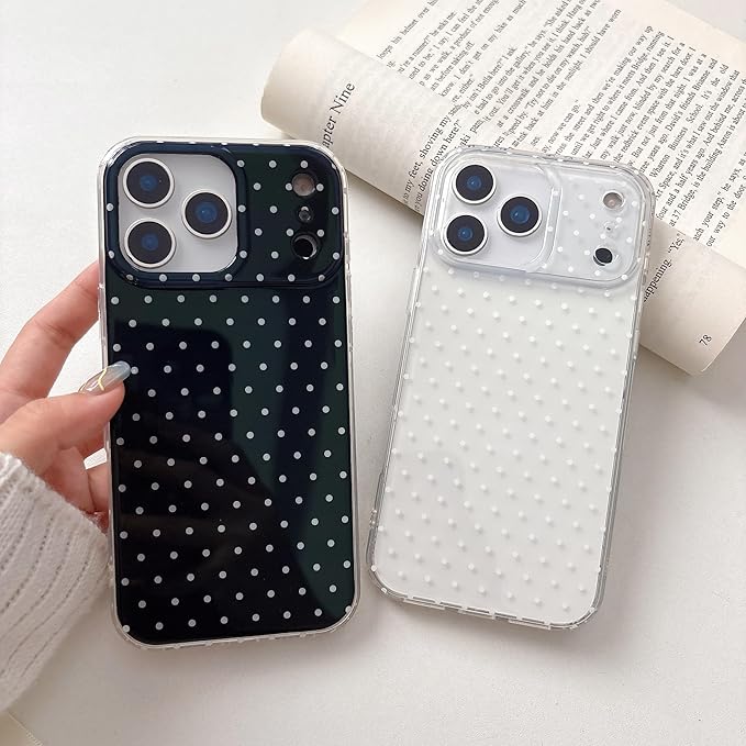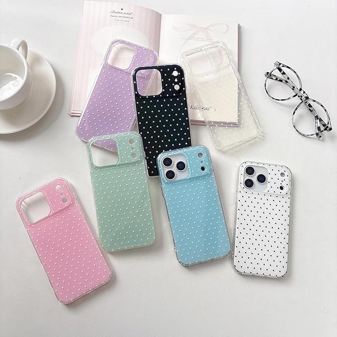 QLTYPRI iPhone17promax 用 ケース ポルカドット TPU カバー おしゃれ 韓国 可愛い 水玉 スマホケース 薄型 軽量 耐衝撃 ワイヤレス充電対応 ストラップホール付き アイフォン17 Pro Max ケース 6.9インチ 対応 - クリア