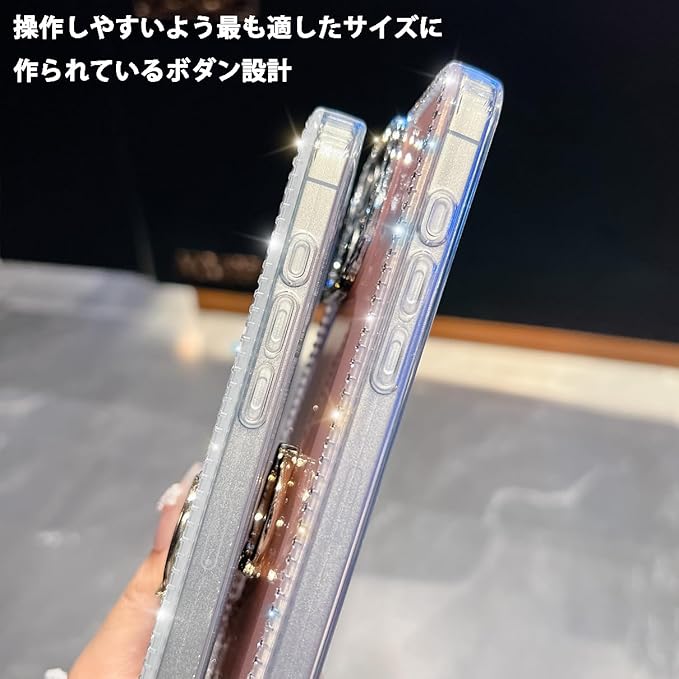 YUYIB 用 ケース リング付き ドリル きらきら ブリンブリン かわいい スタンド機能 おしゃれ キャラクター 軽量 薄型 衝撃吸収 女性人気 ストラップ穴あり スマホケース