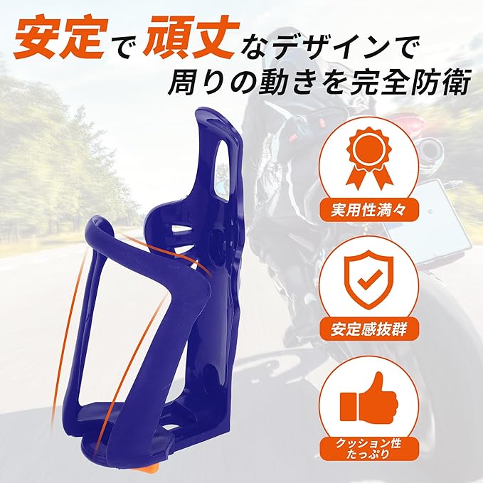 【運転中のズレを防止!強固固定設計】自転車 ドリンクホルダーは独自の滑り止め構造で、カップとボトルをしっかりホールドし、振動と衝撃があっても心配しないです。