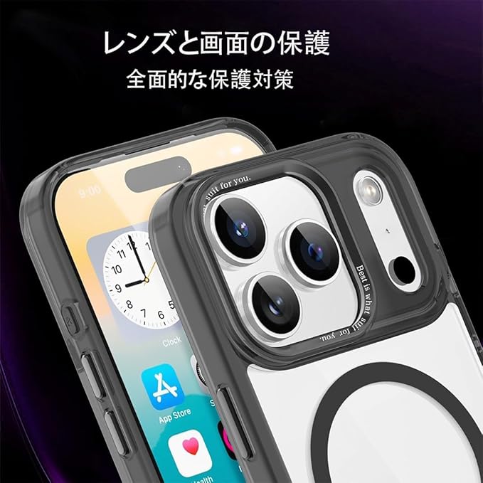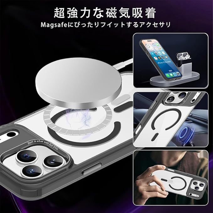 【MagSafe 対応】軍用レベルマ ハイパワーマグネット内蔵、通常ケース以上の33.78%の磁力を発揮します。ケースを外す必要がなく、MagSafe 充電器と自動的に位置合わせし、本来の充電速度を体験できます。また、すべての MagSafe アクセサリと互換性があります。