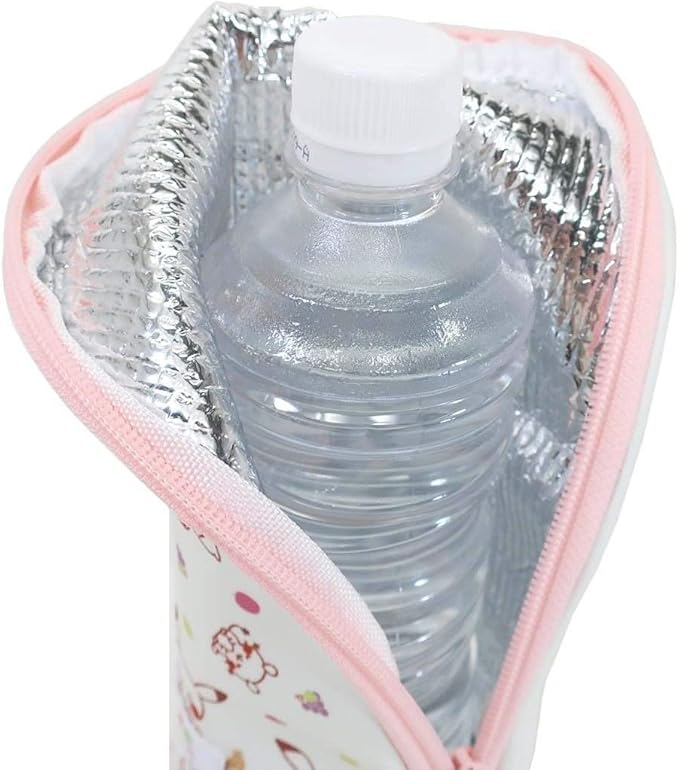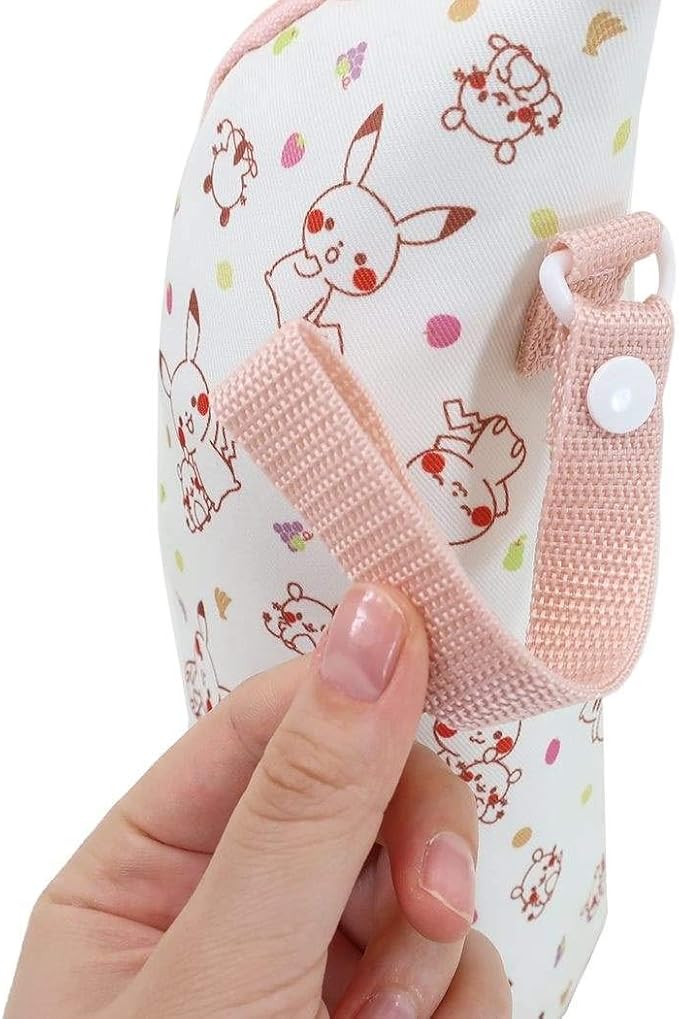 モンポケをデザインした哺乳瓶ポーチ。口開きが良く、出し入れしやすくなっています。内側にはアルミシートを使用しています。500mlのペットボトルにも対応しています。