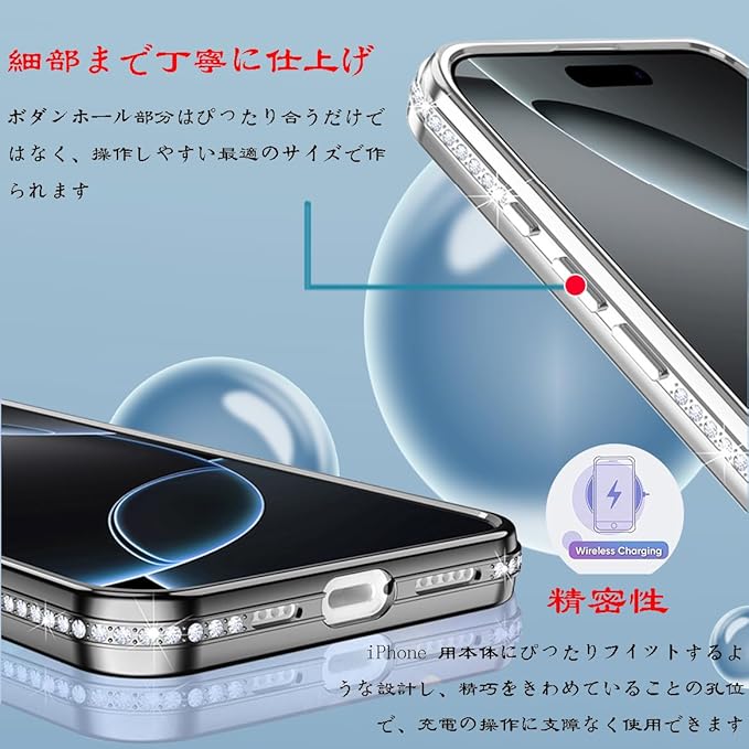 【ラグジュアリーなキラキラカバー】サイドのバンパーにはラインストーンが並び、正面から見ても、裏面から見ても高級感のあるデザイン。キラキラしている可愛いドリルが施されているので、スマホをファッションアイテムに変身させます。品の良いきらきらする感なのでどなたでもお使いいただけます。