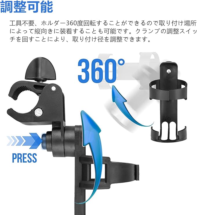 [Hordlend] 自転車カップホルダー ペットボトル ドリンク ホルダー バイク 360度回転 簡単角度調整 車椅子 マウンテンバイクベビーカー オートバイ クリップ 簡単取付SBJ-015