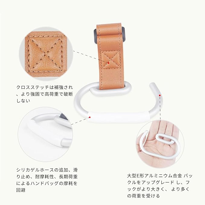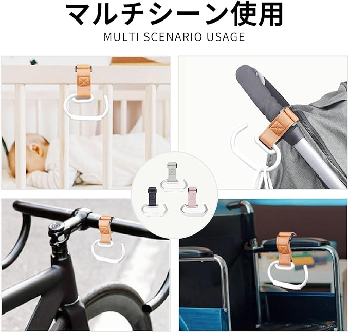 【幅広い適用】調節可能な滑り止めストラップは、すべてのトロリーに対応。フック部分の厚み&幅、幅のある流行りのマザーズバックの持ち手もフィットします、様々なものをしっかりと掛けられ、乳母車、自転車のハンドル、キッチン周り、パイプヘッド、荷物、ベビーカーなどに適しています。