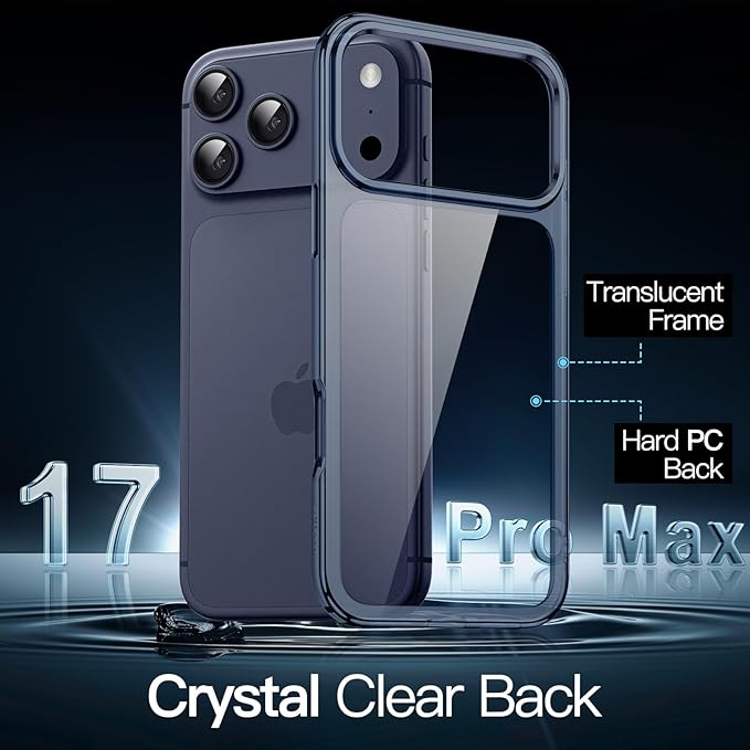 JETech iPhone 17 Pro Max 6.9インチ用 ケース 黄ばみなし 衝撃吸収 バンパーカバー 傷つけ防止 クリアバック (ディープブルー)