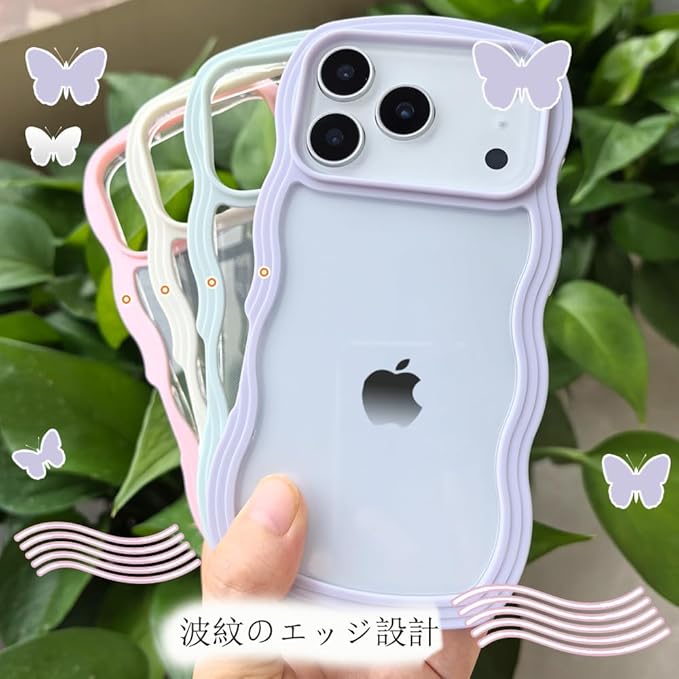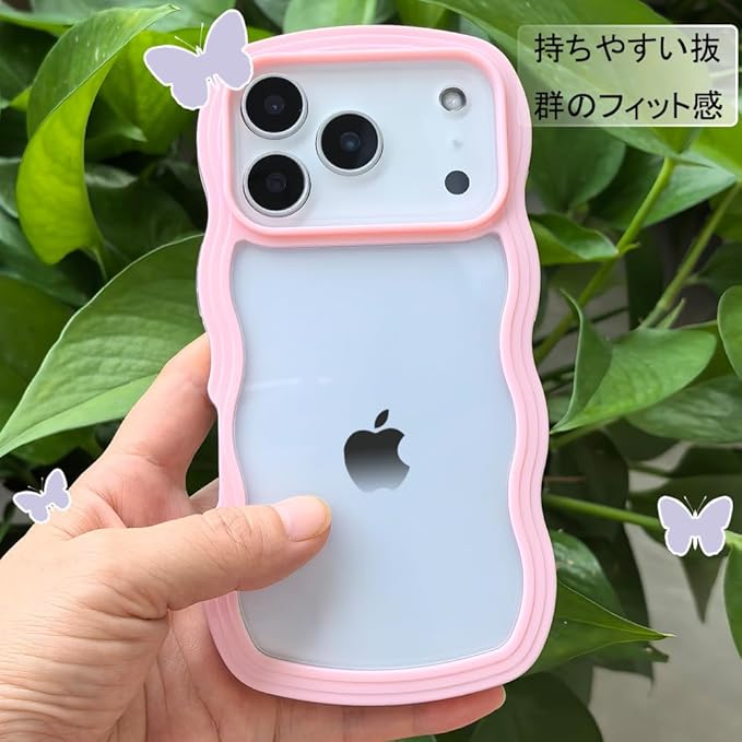 スマホケース 対応 iPhone 17 Pro Max ケース クリア 透明 TPU 韓国 かわいい ウェーブ ソフト 滑り止め 薄型 軽量 耐衝撃 女性 人気 おしゃれ スマホケース ストラップホール付き 対応 アイフォン17プロマックス 携帯電話 カバー (ピンク, 17 Pro Max)