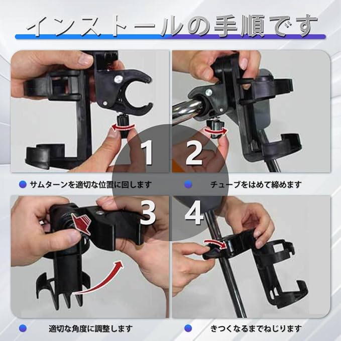 取り付け簡単:工具不要で簡単に取り付けられます。 フレームやハンドルバーなど、お好きな場所に取り付けることができます。