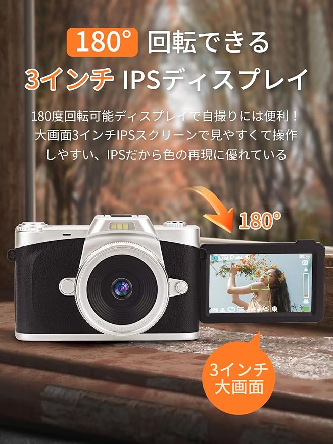 Moledro デジタルカメラ 4K デジカメ 6800万画素 180度回転可能ディスプレイ 広角レンズ付属 32GBマイクロSDカード付き 16倍デジタルズーム オートフォーカス機能 手振れ補正 ウェブカメラ 自撮り便利 3インチ大画面 バッテリー2枚 コンパクト レトロカメラ OTGカードリーダー付き(ブラック)
