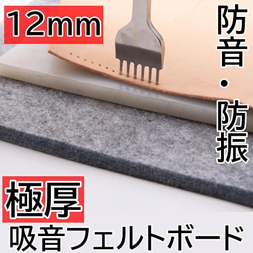 フェルトボードはレザークラフト作業時の防音・防振のためにお使いいただけます。この商品は、従来品よりより厚みがある厚さ12mmの極厚タイプです。