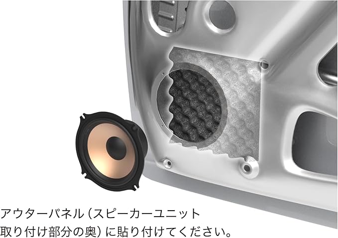 スピーカー裏のアウターパネルに貼り付けるだけの簡単作業。