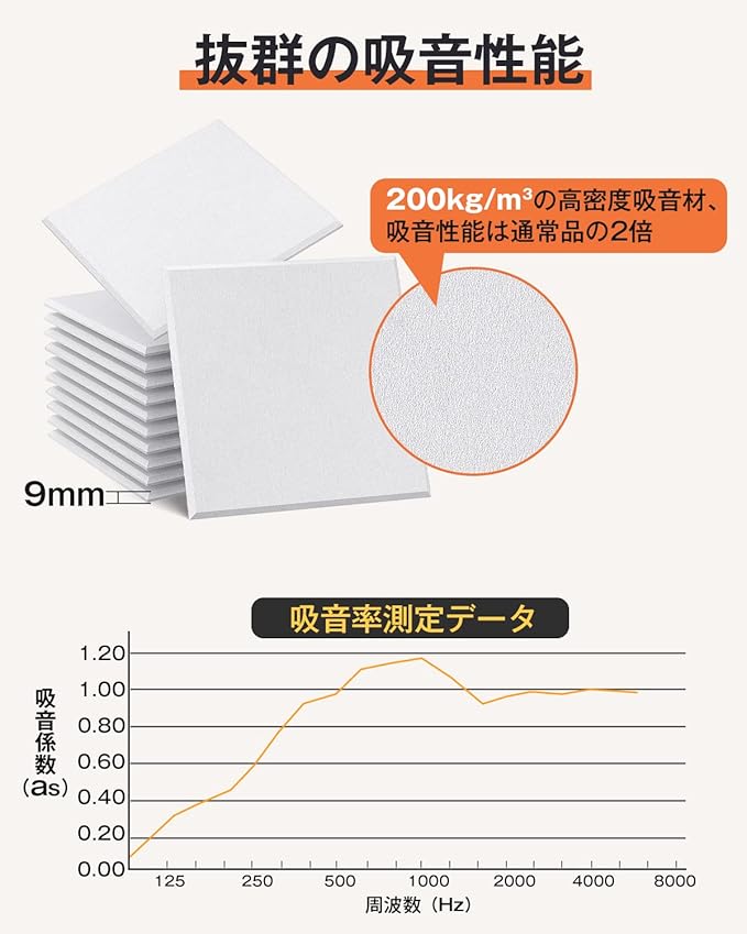 【使用上のアドバイス】吸音パネルの主な目的は音質の向上であり、室内の壁を70%以上覆うと効果がより顕著になります。より良い遮音効果を追求する場合、Moon Riverの防音シートとの併用がお勧めです。
