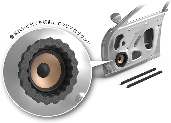 25mmの厚さによりスピーカー面とドアトリムの空間を埋めて、確実に防音。