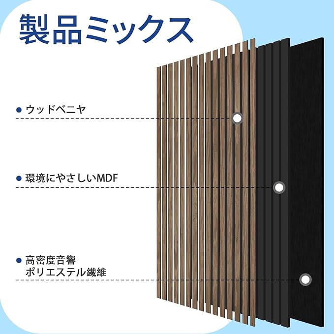 天然木目デザイン:高品質な天然木材を使用した防音ウッドパネル。リアルな木目デザインがリビング、寝室、オフィスに温かみとスタイリッシュな雰囲気をプラスします。天然木目カラーはどんなインテリアにも調和します。