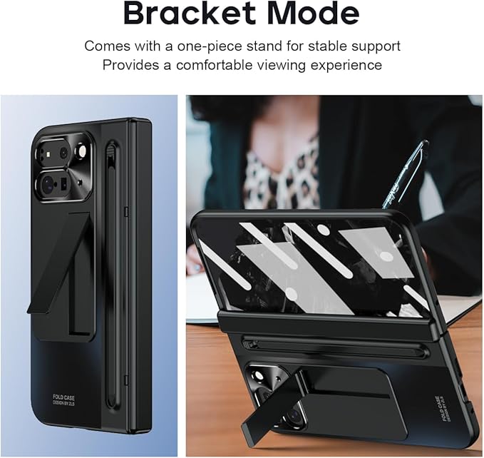 【Google Pixel 10 Pro Fold / 9 Pro Fold専用】多機能統合型 ケース 全面保護+強化ガラスフィルム+きんぞくラッカ+ペン 隠しスタンド機能 ヒンジ保護 ワイヤレス充電サポート 手帳型 携帯カバー 薄型 軽量 キラキラ 衝撃吸収 指紋防止 面白い 個性 二層構造 Beautycatcher - 黒