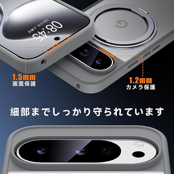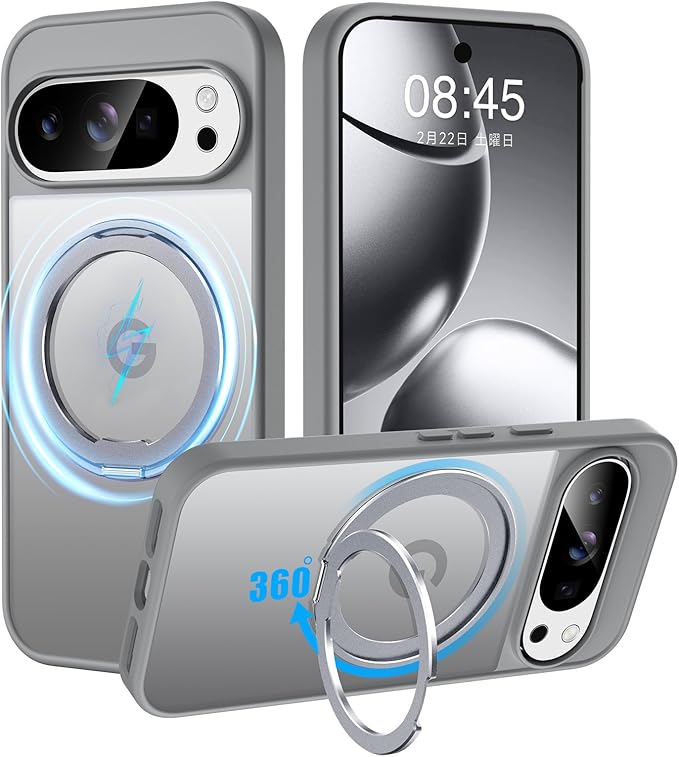 【米軍MIL規格・Magsafe対応】Google Pixel 10 / 10 Pro 用 ケース MagSafe対応 リング 360 回転スタンド機能 縦横両対応 半透明 黄ばみ防止 ワイヤレス充電 レンズ保護 耐衝撃 携帯カバー グーグルピクセル10/10プロ カバー マグネット搭載 車載ホルダー マグセーフ対応 おしゃれ (グレー)