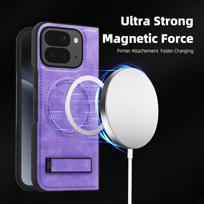 携帯ケース【Google Pixel 10 Pro Fold専用】手帳型 折畳み式スタンド 磁気対応ワイヤレス充電 超薄軽量360 保護 二重凹凸ガード 親肌荔枝紋 レザー レンズ保護 人気 独立ボタン カバー ソフトTPUフレームアル 指紋防止 可愛い 面白い スマホ 耐衝撃 豪華 おしゃれ 滑り防止 複合構造 Beautycatcher - 紫