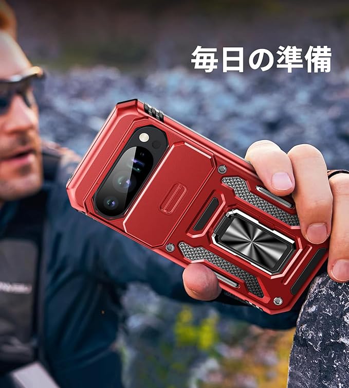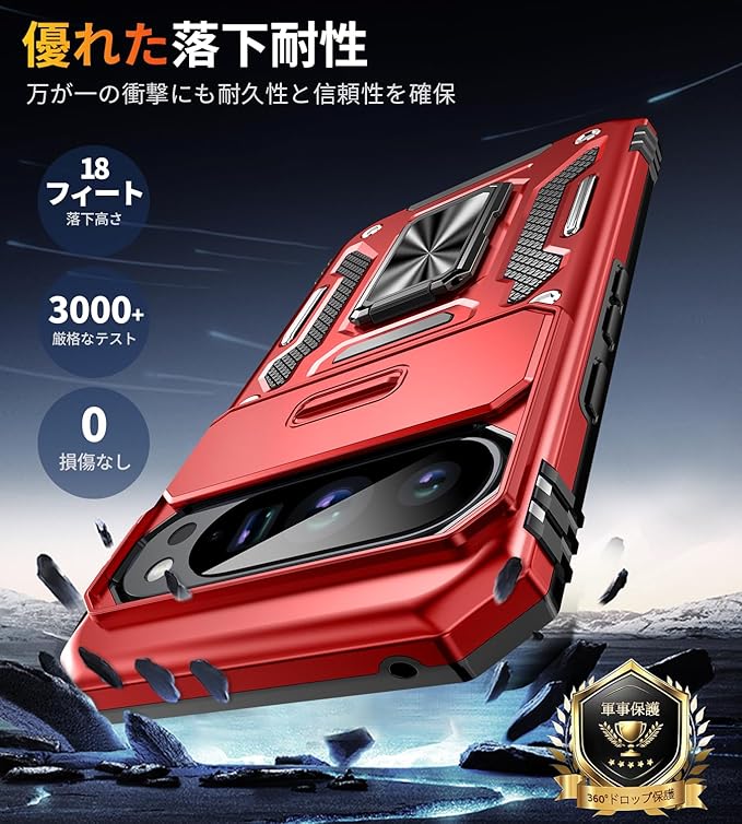【米軍MIL規格 & スライド式カメラカバー】Pixel 10/10 Pro 用 ケース カメラ保護付【 360 回転 横縦両立・角度自由調整】指紋防止耐衝撃ヘビーデューティ 頑丈ケース 耐久性 SGS認証 Google Pixel 10/10 Pro 用