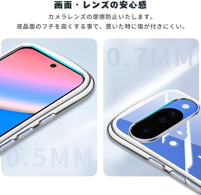 【全面保护の Google Pixel 10 / 10 Pro 用の スマホケース】レーム部分とカメラのフチを高く設計し。平らな場所においても、液晶画面とカメラレンズに直接触れることがなく。