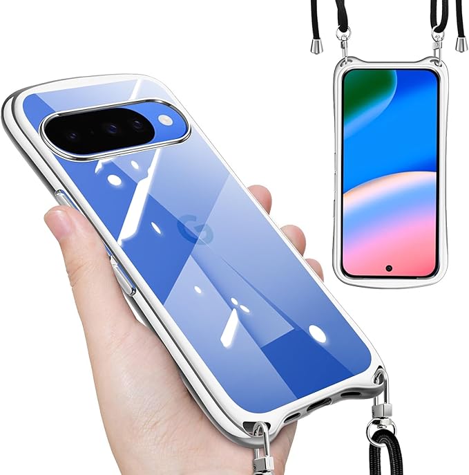 Google Pixel 10 用の ケース 10 Pro 用の ケース ショルダー ストラップ ピクセル10 / 10 Pro 用 カバー クリア 肩掛け 斜めかけ 韓国 pixel 10 / 10Pro 用の 透明 スマホケース (シルバー)