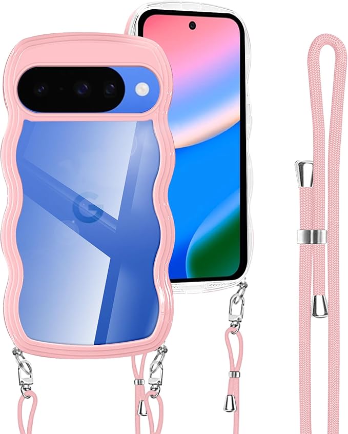 Google Pixel 10 用の ケース ショルダー Pixel 10 Pro 用の ケース クリア ピクセル10 用の カバー 斜めかけ 肩がけ 首掛け ストラップ 韓国 pixel10 用の スマホケース ピンク