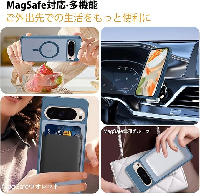 Google Pixel 9 / 9 pro ケース Pixel 10 / 10 pro ケース 通用 MagSafe対応 マグセーフ ワイヤレス充電 マット仕上げ 半透明 マグネット搭載 TPU PC 落下防止 衝撃吸収 滑り止め 防塵 耐久性 黄ばみなし 耐衝撃 全面保護 レンズ保護 グーグル ピクセル 9 プロ ピクセル 10 プロ カバー(ブルー)
