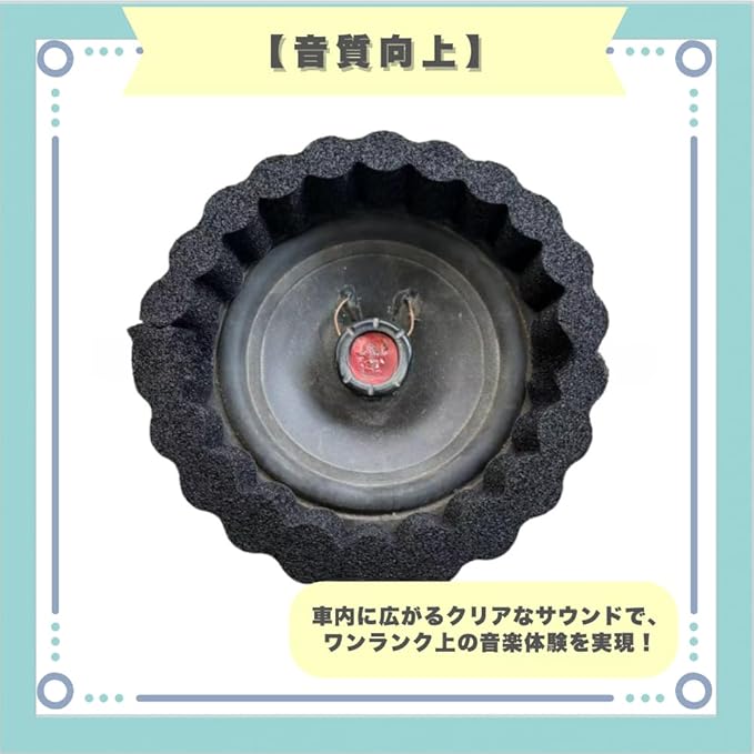 【音質向上】車内に広がるクリアなサウンドで、ワンランク上の音楽体験を実現!【簡単施工】貼るだけカンタン!スピーカーの外周に巻くだけでOK!【高い吸音性】波型スポンジが音の乱反射を防ぎ、ノイズをしっかり吸収!【音漏れ防止】音を外に漏らさず、車内だけで極上の音響空間を楽しめます。