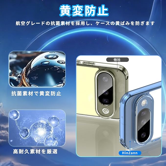 [5D全透明バックプレート]TPU透明ケースは99%の透過率を実現し、Google Pixel 10の美しいボディデザインを忠実に再現。航空機級の黄変防止素材を採用し、特殊コーティング処理を施しているため、紫外線・汗・経年劣化による変色や黄ばみを防止。長期間使用しても透明で美しい状態を保ちます。