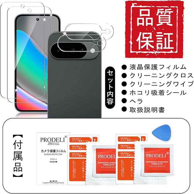 PRODELI For Google Pixel 10 専用 ガラスフィルム (2枚) + カメラフィルム (2枚) 硬度9H 高透過率 耐衝撃 自動吸着 2.5Dラウンドエッジ 強化ガラス 気泡無し グーグルピクセル10 用 保護フィルム【4枚入り】