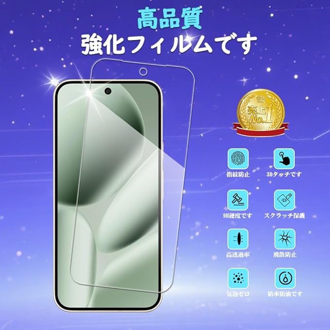 対応機種:Google Pixel 10 / Google Pixel 10 Pro 専用に設計された高品質な保護フィルムセットです。セット内容: 強化ガラスフィルム2枚セット。万が一の失敗や交換用として安心の予備付き