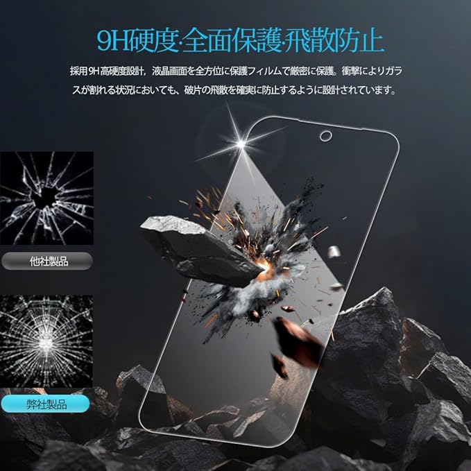 優れた保護性能: 硬度9Hの強化ガラスで画面とカメラレンズを傷や衝撃から守ります