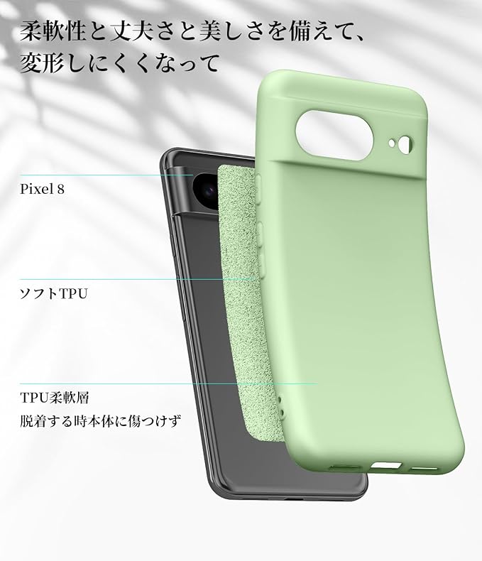 【防震耐衝撃・擦り傷指紋防止】Google Pixel 8 用への永続的な保護を提供します。環境に優しく、無毒無味の高品質TPU素材採用、ソフトシリコンエッジ、外部からの衝撃を吸収し、落下、衝突、衝撃、擦り傷、その他の損傷から携帯電話を強力に保護します。表面撥油性コーティング設計、つや消し、滑り止め効果あり、指紋防止、油汚れ防止、防汗、繊細な手触り感、爽やかな感触も与えます。