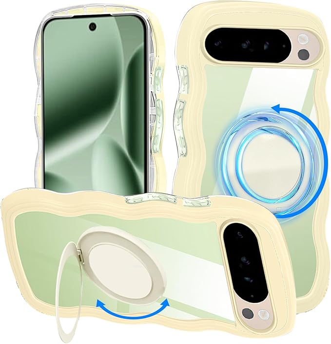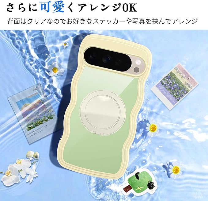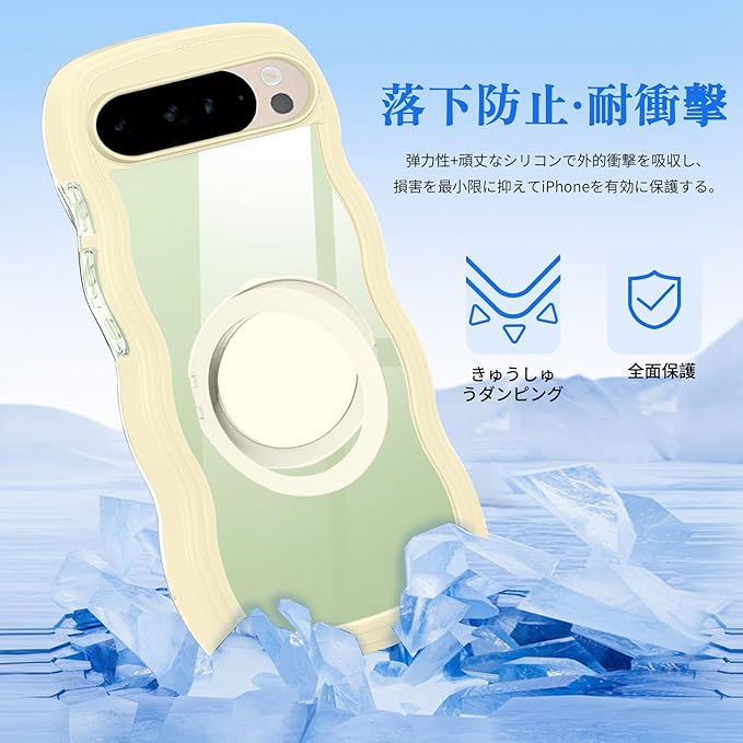 Google Pixel 10 用 ケース リング クリア ピクセル10 pro カバー スマホケース 透明 背面ケース 可愛い 耐衝撃 ストラップホール付き 波型 黄 韓国 人気 イエロー