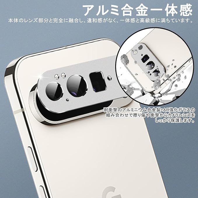 【アルミ合金一体感】本体のレンズ部分と完全に融合し、違和感がなく、一体感と高級感に満ちています。耐衝撃のアルミニウム合金製+AR強化ガラスの組み合わせで擦り傷や衝撃からpixel 10 proカメラレンズをしっかり保護します。
