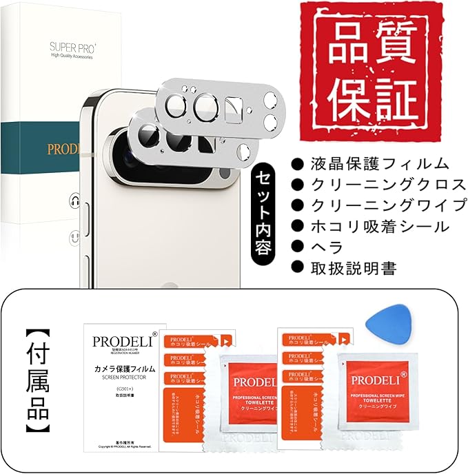 PRODELI For Google Pixel 10 Pro 専用 カメラフィルム アルミ合金製+AR高透過率 一体型 硬度9H キズ防止 高透過率 耐衝撃 強化ガラス 気泡ゼロ 露出オーバー防止 防爆裂 ケースに干涉なし ピクセル10 pro 用 レンズ 保護フィルム (シルバー/2枚入り)