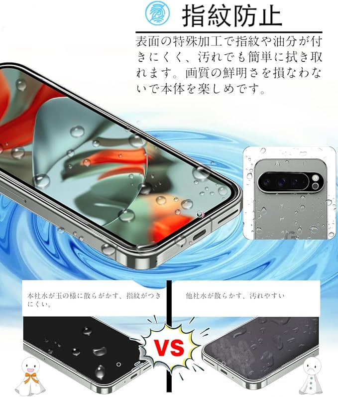 【快適な指滑り&指紋防止加工】Google Pixel 9 pro XL 保護フィルム表層高密度素材から本体との密着で、より速く、より滑らかなタッチ感を実現。指の滑りは何も貼っていないくらい良く、流水みたいな流れで高速文字入力も支え、指から心までその抜群な使い心地を感じられます。特殊コーティング処理で、指紋の付着を軽減、日常生活での汚れや油脂などもティッシュなどで軽く拭くだけでとれます。元々の画質が損なわれません。