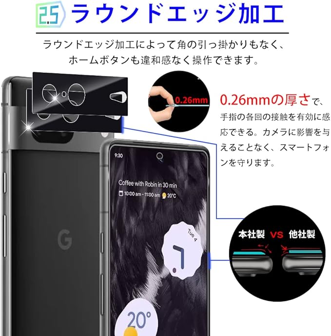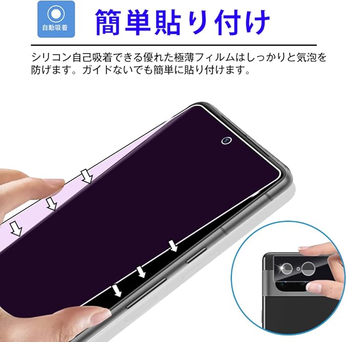 【快適な指滑り&指紋防止加工】 Google Pixel 7専用保護フィルム表層高密度素材から本体との密着で、より速く、より滑らかなタッチ感を実現。指の滑りは何も貼っていないくらい良く、流水みたいな流れで高速文字入力も支え、指から心までその抜群な使い心地を感じられます。特殊コーティング処理で、指紋の付着を軽減、日常生活での汚れや油脂などもティッシュなどで軽く拭くだけでとれます。元々の画質が損なわれません。
