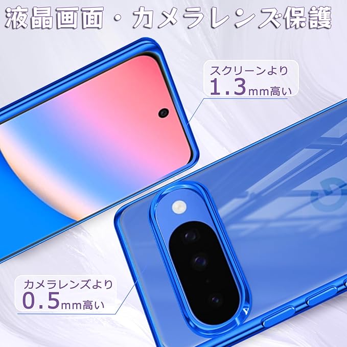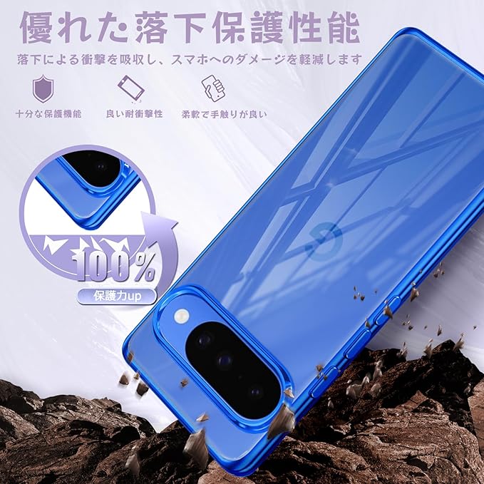Google Pixel 10 用 ケース Google Pixel 10 Pro 用 ケース クリア ピクセル 10 / ピクセル 10 Pro 用 スマホケース 透明 ソフト tpu 薄型 カバー 背面クリア 青 ストラップホール付き 軽量 耐衝撃 ブルー