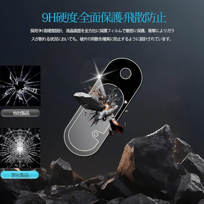 優れた保護性能: 硬度9Hの強化カメラレンズを傷や衝撃から守ります