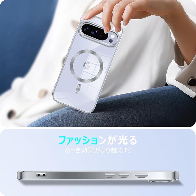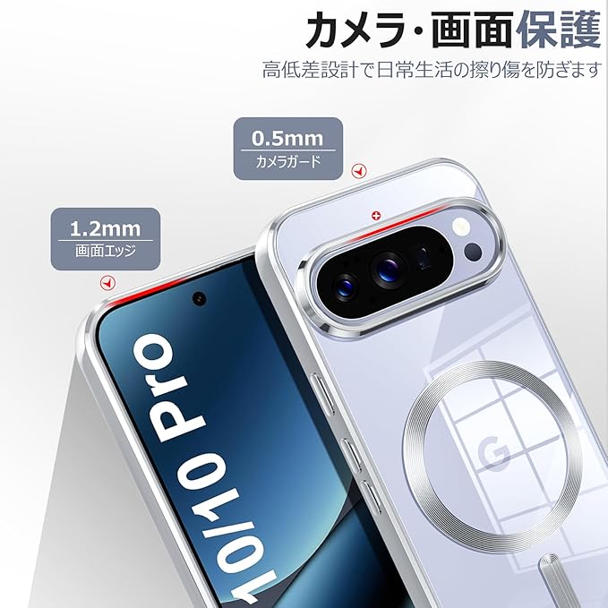 Google Pixel 10/Pixel 10 Pro 用ケース Magnetic対応 ワイヤレス充電 軽薄型 TPU ソフト グーグル ピクセル 10/10 pro用スマホケース マグネット搭載 耐衝撃 米軍MIL規格取得 黄変防止 耐久性 ストラップ穴付き おしゃれ 携帯カバー 銀 D83-14 CP
