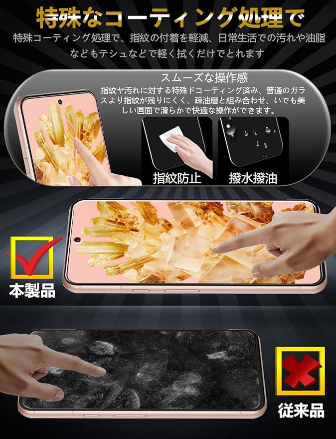 【完璧な透明性・高触感】透明なgoogleピクセル8のガラスフィルムは多層フィルタを採用し、極めて高い透明性を確保し、液晶画面を保護しながら画面本来の鮮やかな画質を維持し、何も貼られていない感覚で液晶画面の美しさを楽しむことができます。極薄の厚さでタッチスクリーンの反応を損なわず表面のオイル加工により快適な操作が可能。100%正確かつ迅速に応答し、スムーズな操作感を実現します。