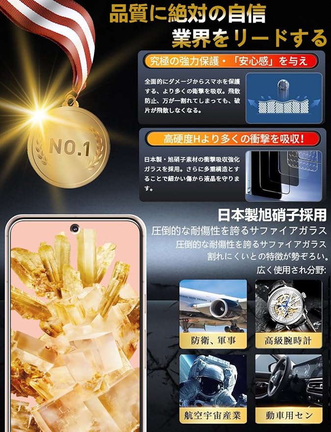 【超安全性・飛散防止】この グーグルピクセル8 液晶保護ガラスは業界最高レベルの硬さ9H+を使っており、4.5時間以上の高温処理加工しておりますので、ガラスフィルムは通常のガラスの硬さの5倍に達しました。かぎやナイフなどの鋭いものに触れても傷しにくいです。更にガラスの表面に防爆PET層を増やして、衝撃されても割れたら飛散しなく、ユーザー様の身の安全を守ります。あなたの大切な携帯電話のカメラ画面を衝撃や傷から守る。