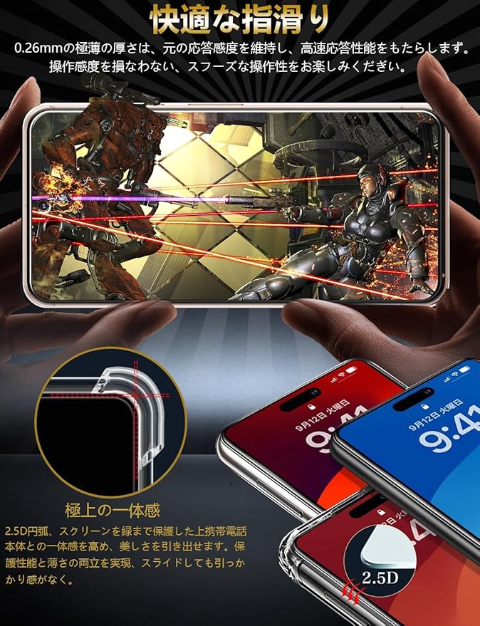 【露出過度を避け・指紋防止】カメラレンズ部分の特殊な露出防止技術は、撮影時の露出過多を効果的に防止し、高画質の画像を取得し、本格的な撮影体験を楽しむことができる!保護シートは特殊コーティング処理で、指紋の付着を軽減、日常生活での汚れや油脂などもティッシュなどで軽く拭くだけでとれます。美しい画面とスムーズな操作体験をあなたにお届けします。