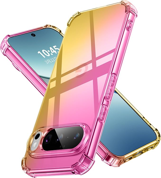 PNEWQNE Pixel 10/10 Pro 用ケース グラデーション クリア 全面保護カバー 耐衝撃 衝撃吸収 tpu 耐震 ソフト軽量 薄型 落下防止 米軍MIL規格 透明 耐久 黄変防止 指紋防止 滑り防止 人気 携帯カバー ピンク+金 WY66-49