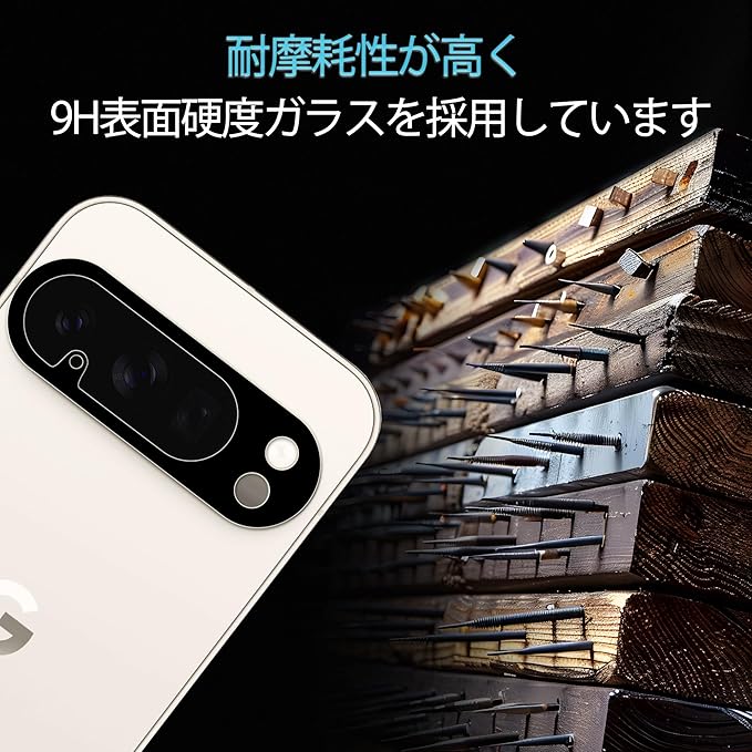 【9H硬度・日本製ガラス素材】pixel 10 pro xl 用の カメラフィルム 日本旭硝子製ガラス素材採用 最上級強度のガラスを使用し表面硬度は9H。万が一スマホを落としてガラスが割れても、 ガラス破片が飛び散らないような安心設計。 飛散防止 、ガラス破片から守ります。